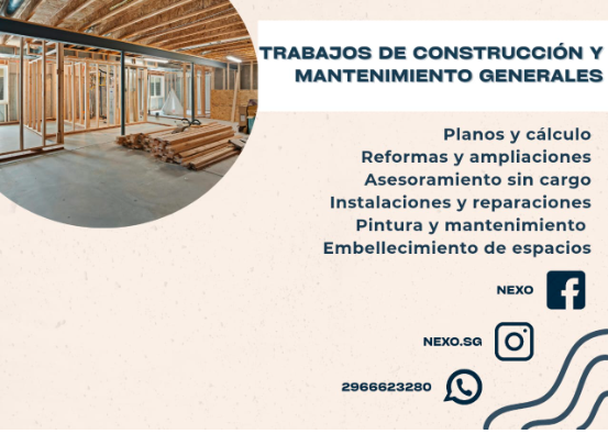 Servicios Generales de Construcción Trabajos en interior y exterior Horario de Atención Lunes a Viernes de 9:00 a 17:00