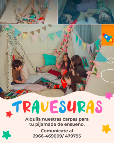 ¡La diversión no tiene limites con Traveruras! Ofrecemos el servicio de alquiler de plaza blanda y alquiler de carpas tipis, ya sea para cumpleaños y o pasar una tarde o noche agradables